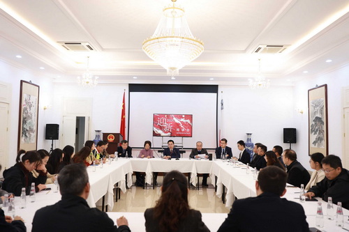 2025年12月23日,驻马耳他使馆与驻马机构及留学生代表举行迎新座谈会。驻马耳他大使张佐出席会议并致辞,使馆外交官与中国文化中心、驻马中企、援马医疗队等驻马机构及留学生代表30余人出席会议。