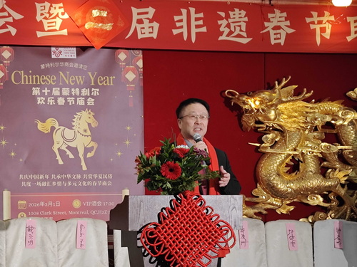 2026年3月1日,驻蒙特利尔总领事戴玉明出席第十届蒙特利尔“欢乐春节”庙会暨第二届非遗春节联欢晚会并致辞。加拿大联邦国会议员芒黛丝、华侨华人等300余人出席活动。